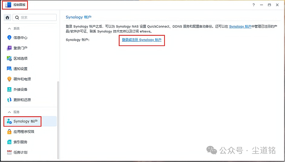 ▼可以在控制面板—Synology帐户中进行登录或者注册。